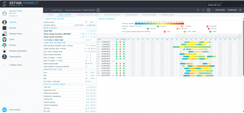 Introduction: Sleep apnoea is a common sleep disorder that is estimated to affect 963 million adults between the ages 30-69 years globally and in the UK the prevalence of OSA is estimated to be 24.5% (1). This is a staggering number that poses many clinically significant challenges for health care providers in the National Health Service with consequences for cardiovascular health, cerebrovascular health, neurological health, metabolic health, including type 2 diabetes and obesity, mental well-being, quality of life, driving safety and work productivity (2). Treatment options such as Continuous Positive Airway Pressure (CPAP) and Auto-Adjusting Positive Airway Pressure (APAP) devices are widely used. However, managing these therapies effectively can be challenging for both healthcare providers and patients.
